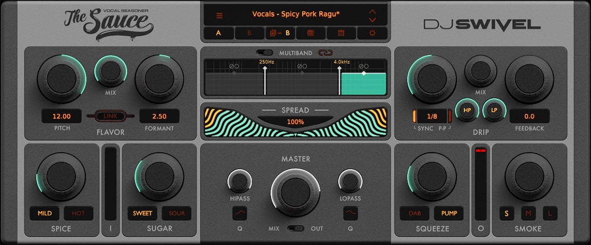 The Sauce traz para você todos os ingredientes essenciais que você precisa para transformar criativamente seus vocais em um simples plugin. Ah, e soa muito bem na bateria e nos instrumentos também. Este plugin é a principal ferramenta criativa do DJ Swivel para processamento vocal dramático.