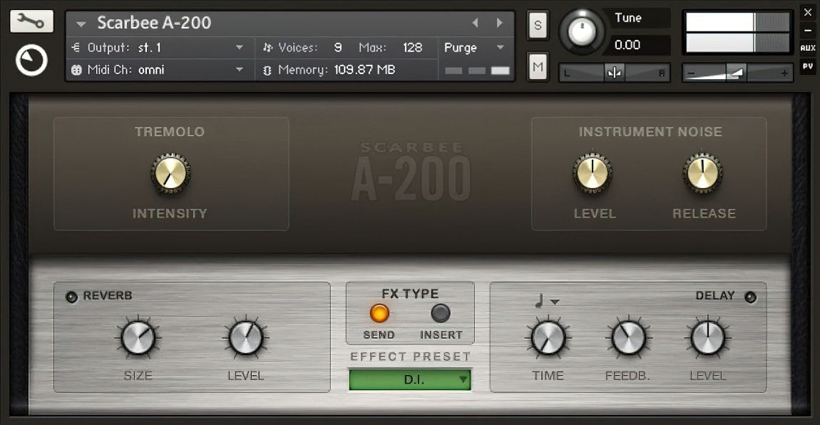 SCARBEE A-200 é um instrumento KONTAKT que oferece uma reprodução incomparável de um dos pianos elétricos mais procurados. O caráter do SCARBEE A-200 varia de suave e doce a um som mais forte e com overdrive quando tocado com mais intensidade. O som distinto do A-200 original era muito amado por bandas de pop e rock nos anos 1960 e 70 e recentemente encontrou o favor de uma nova onda de artistas pop, indie e jazz e eletrônicos.