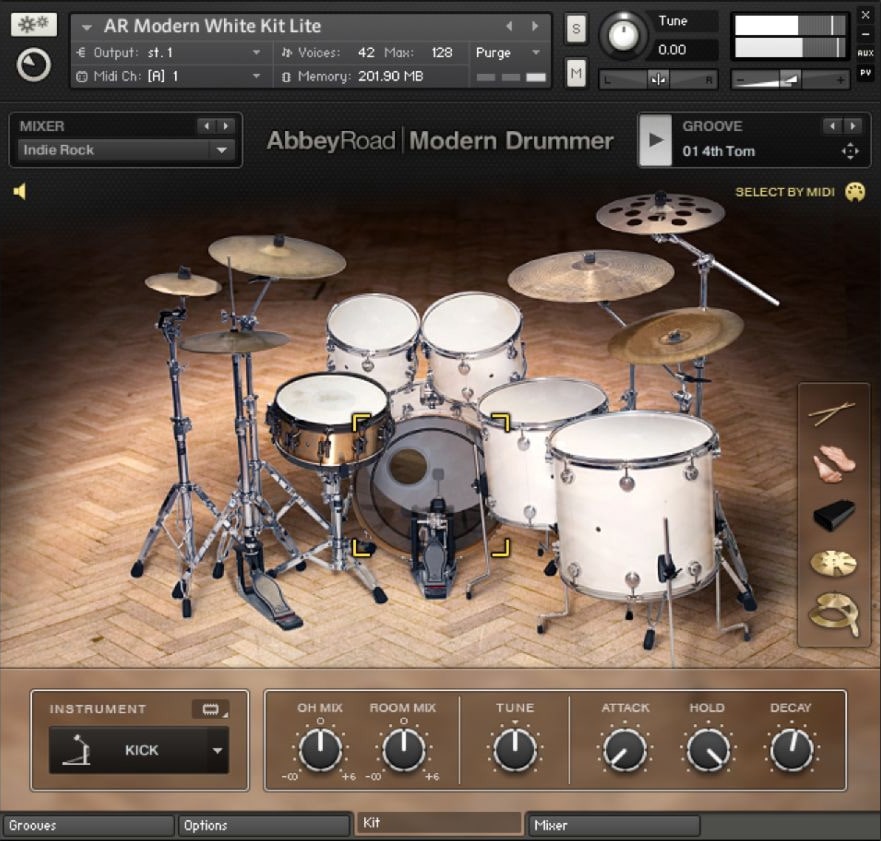 ABBEY ROAD | MODERN DRUMMER coloca bateria contemporânea de classe mundial na ponta dos dedos. Dois kits de bateria premium, gravados no lendário Abbey Road Studios, entregam baterias poderosas e versáteis para rock contemporâneo e pop – bem arredondados, detalhados, com um top-end nítido e arejado e um low-end perfeitamente formado com muito sub-baixo.
