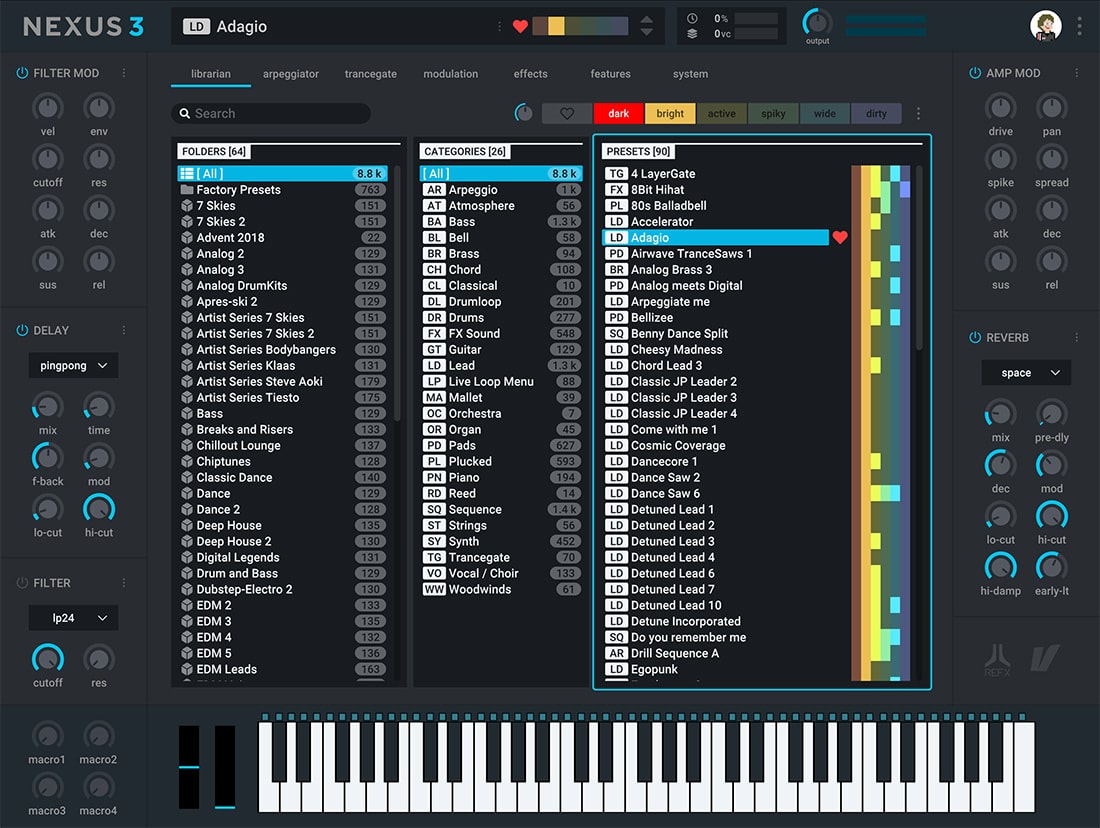 O Nexus 3 permite que os usuários criem facilmente sons exclusivos com suas mais recentes adições ao mecanismo Nexus. Editar presets é mais fácil do que nunca com a adição de quatro controles de macro de acesso rápido e um total de 20 slots de modulação.